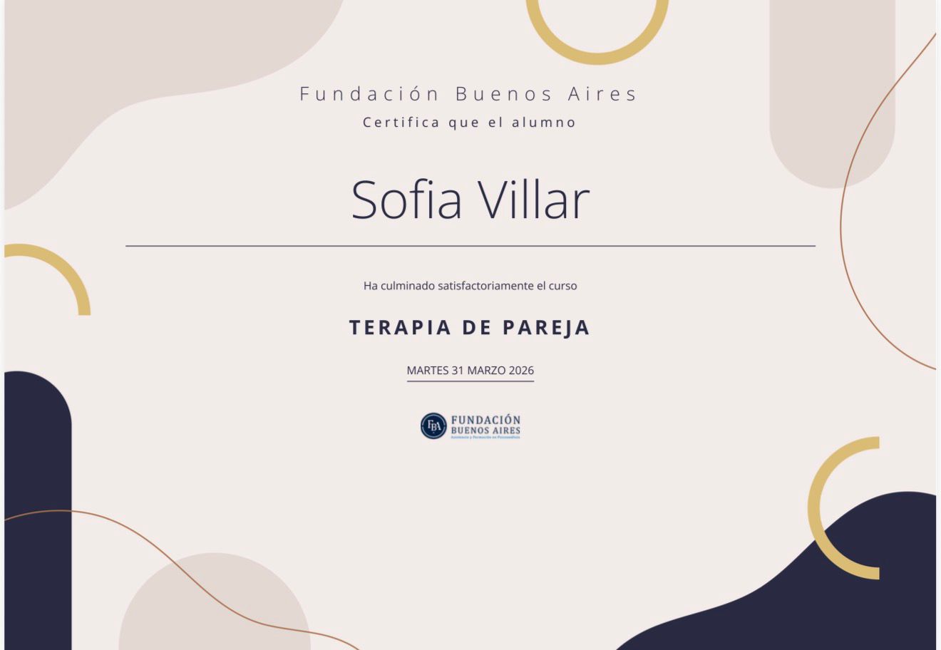 He realizado diversos cursos en terapia de pareja y vínculos, incorporando herramientas que enriquecen mi práctica clínica.